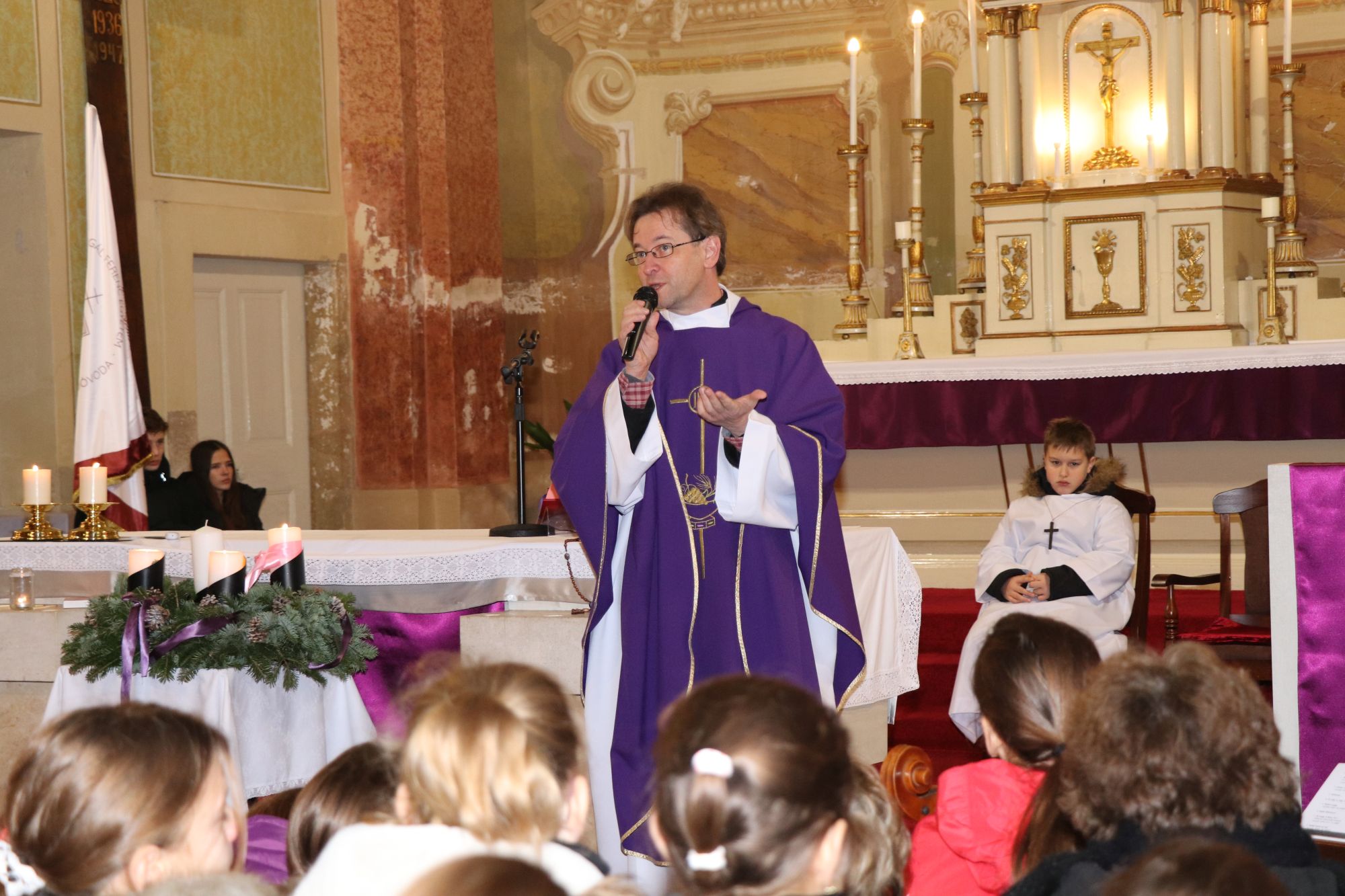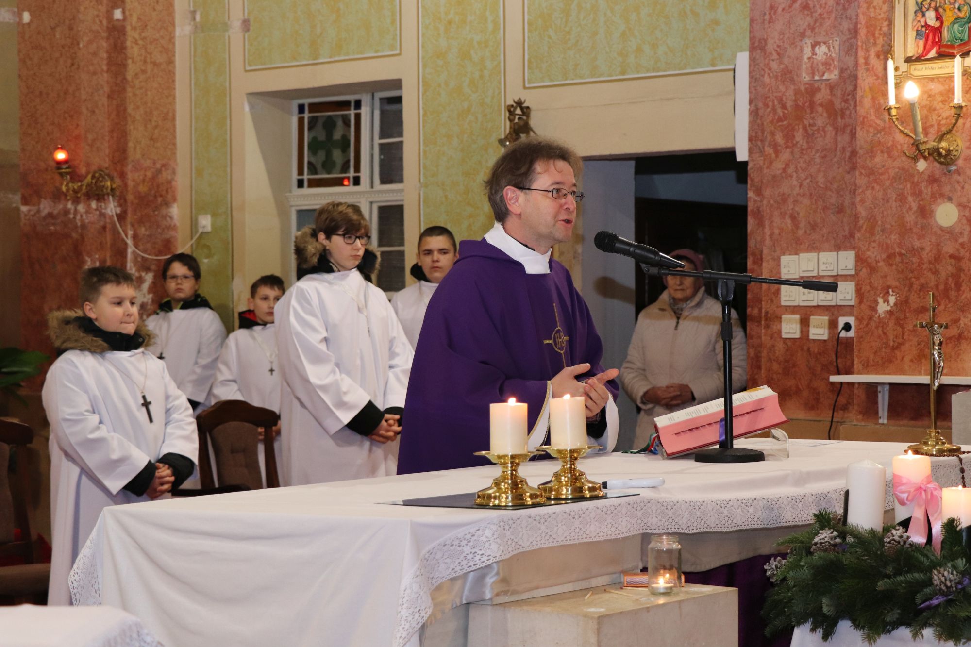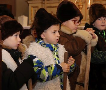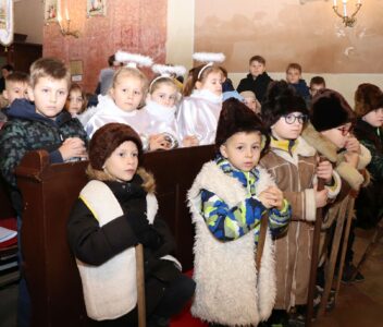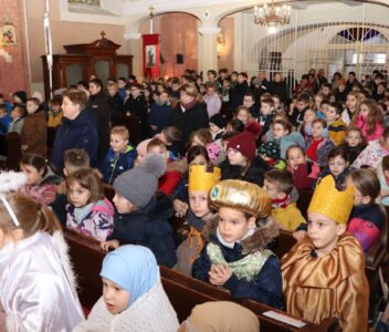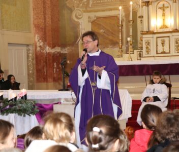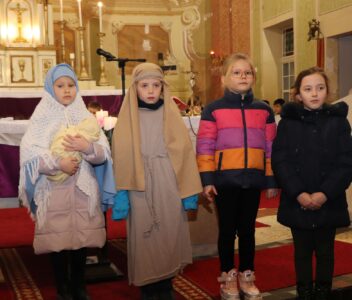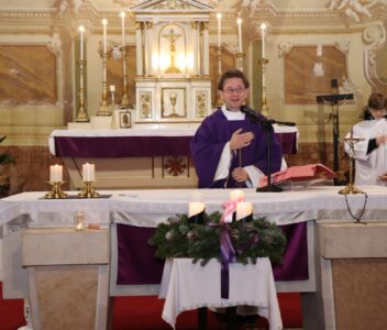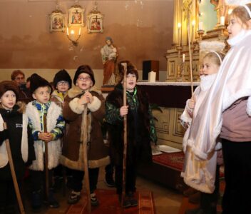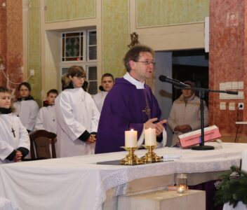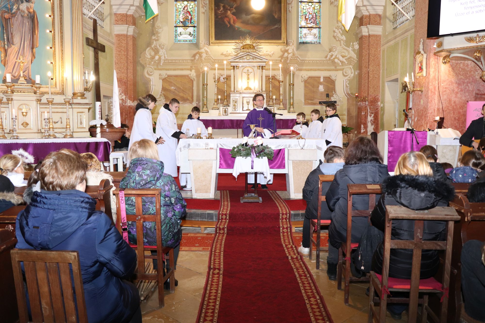 A szentmise liturgikus szövegében, és a gyerekeknek szóló szentbeszédben Dr. Liszkai Tamás plébániai kormányzó egy régi képeslap segítségével idézte fel, ahogy felragyog egy szarvas képe, a fény hordozója és a remény hírnöke. Léptei csendben vezetnek át az éjszakán, ahol a titok rejlik: Isten közeledése az emberhez. Mint az élő vizek után szomjazó szarvas, úgy vágyakozik a világ az irgalom után. E vágy beteljesedik a megszülető Gyermekben, Jézusban, aki világosságul jön minden népnek. Ő a rejtett fény, amely nem vakít, hanem vezet. Hódolattal állunk a titok előtt: az Ige testté lett, és köztünk lakik.