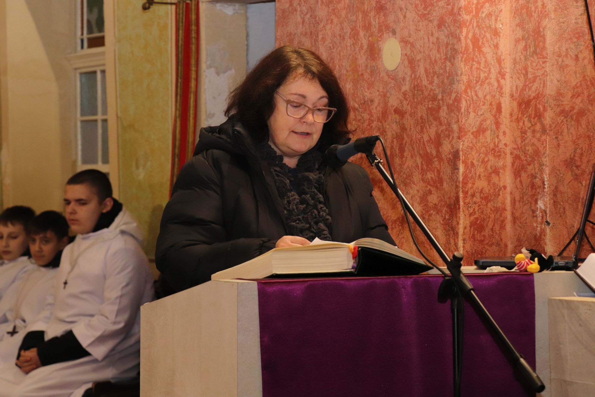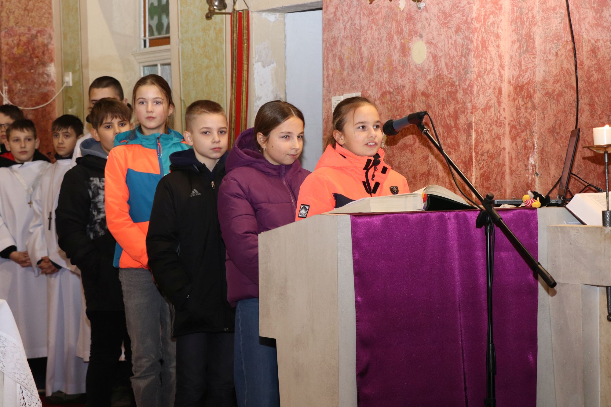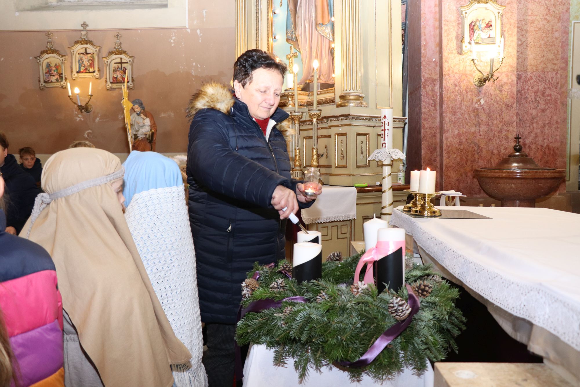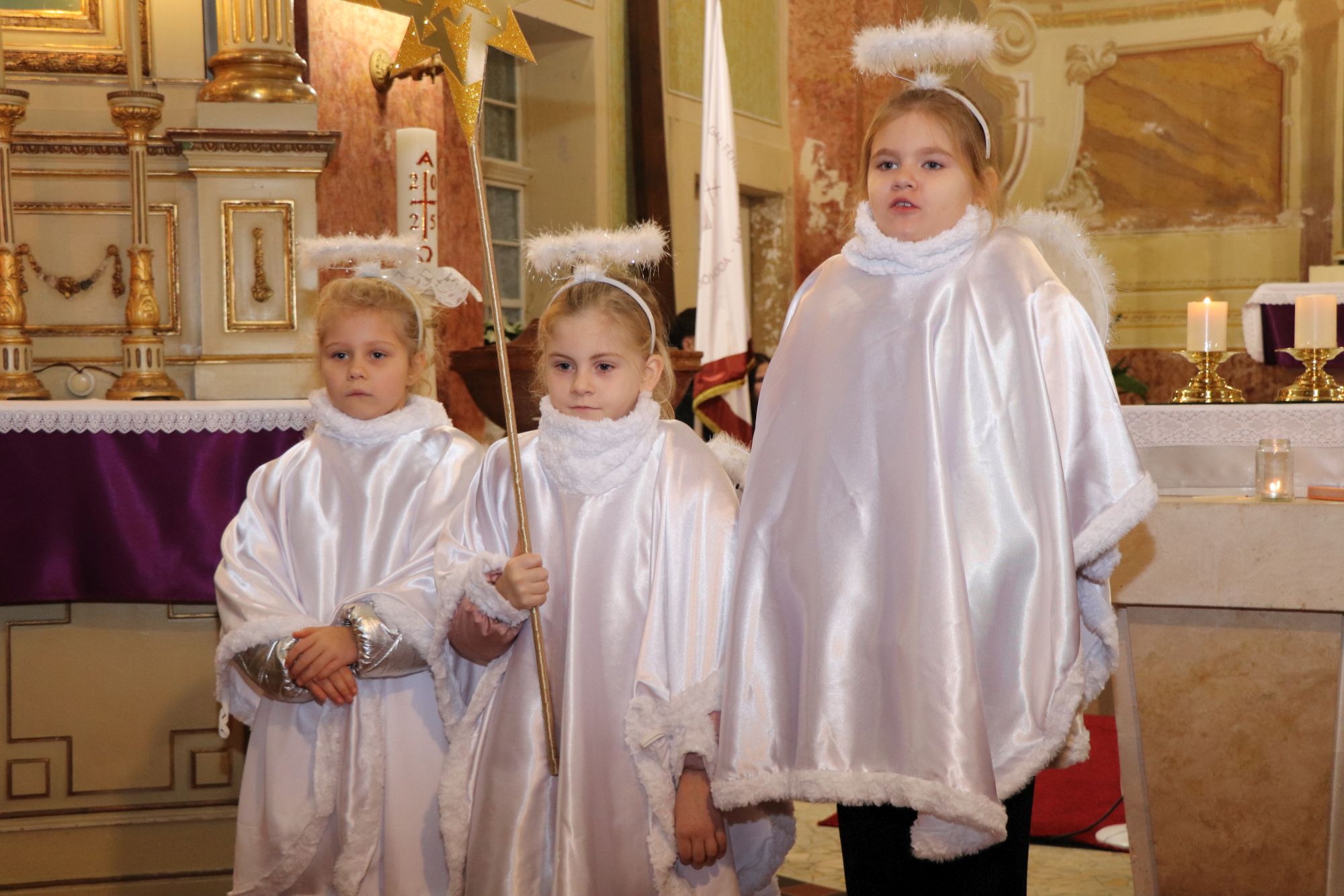 A szentmise liturgikus szövegében, és a gyerekeknek szóló szentbeszédben Dr. Liszkai Tamás plébániai kormányzó egy régi képeslap segítségével idézte fel, ahogy felragyog egy szarvas képe, a fény hordozója és a remény hírnöke. Léptei csendben vezetnek át az éjszakán, ahol a titok rejlik: Isten közeledése az emberhez. Mint az élő vizek után szomjazó szarvas, úgy vágyakozik a világ az irgalom után. E vágy beteljesedik a megszülető Gyermekben, Jézusban, aki világosságul jön minden népnek. Ő a rejtett fény, amely nem vakít, hanem vezet. Hódolattal állunk a titok előtt: az Ige testté lett, és köztünk lakik.
