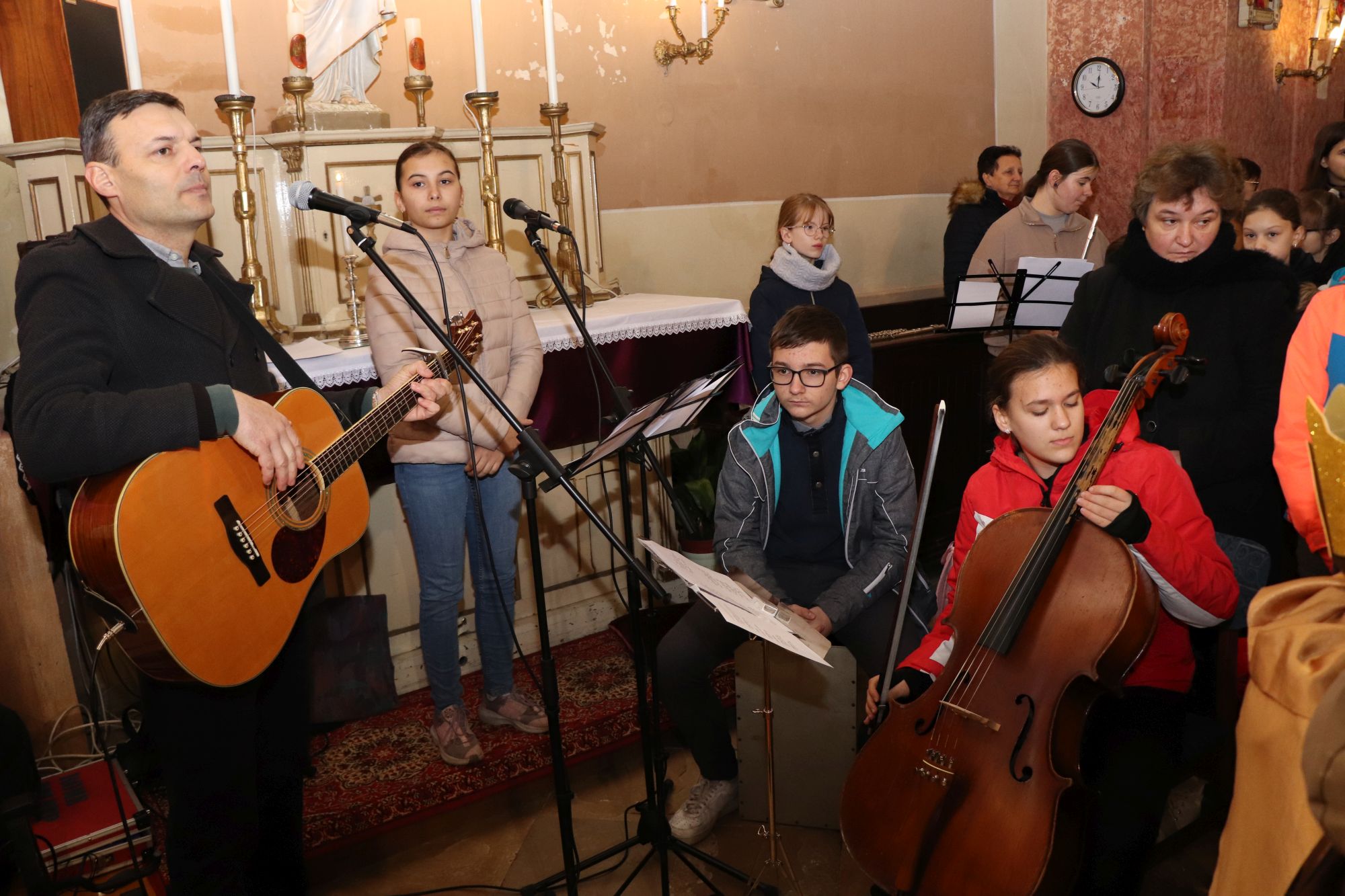 A liturgia fényét emelték az iskola ministránsai, a felolvasói szolgálatot végző Szironyné Zsabka Edit, és az 5. a osztályos tanulók. Vincze János hittanár ez alkalomra is egy kis zenekart szervezett. Csodaszép zenével kísérték a szentmise énekeit, és hozzá a Szív Hangjai iskolai kórus énekelt.