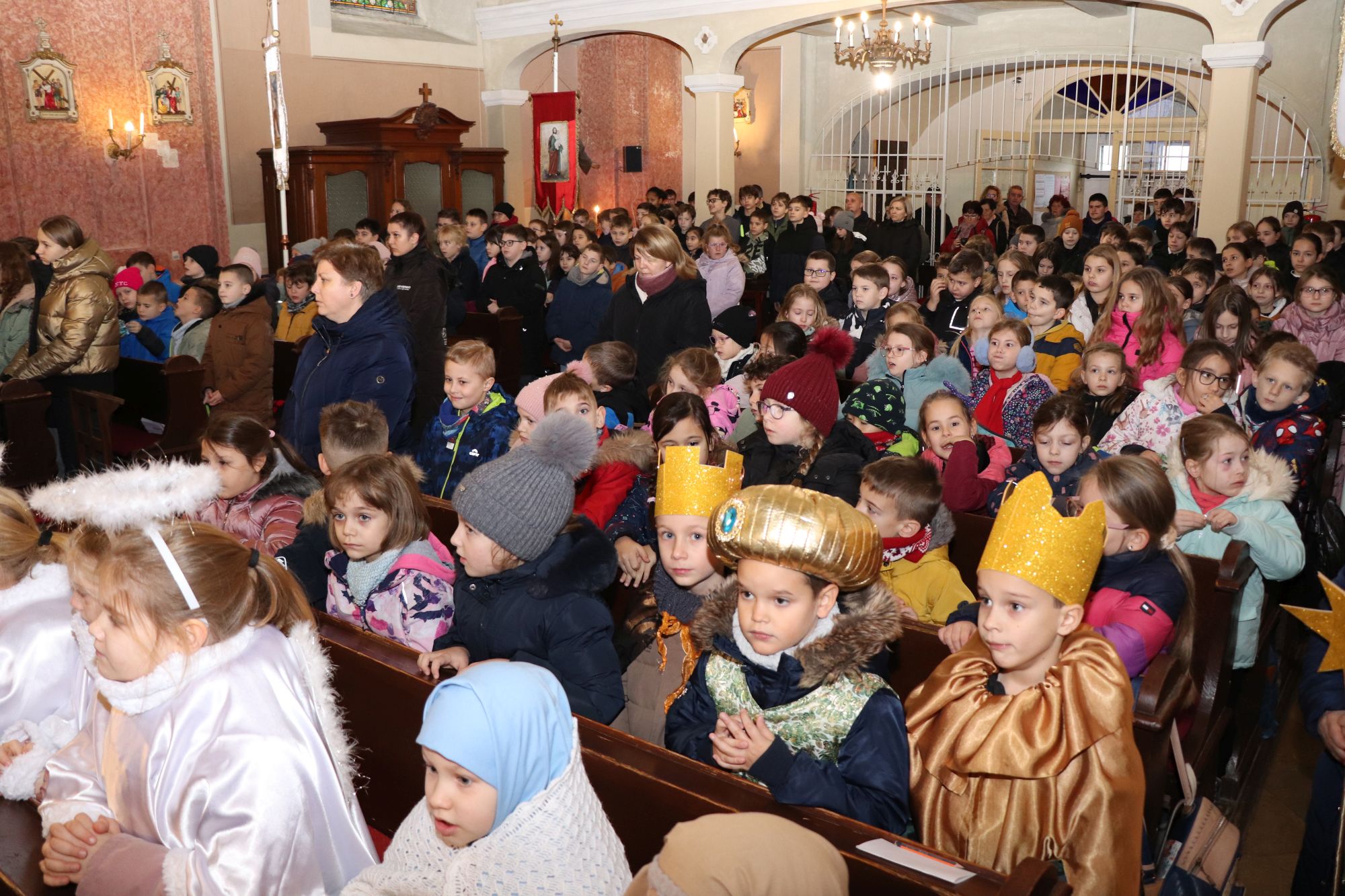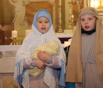 Ahogy közeledik a Karácsony, úgy szaporodtak a meghitt ünnepi alkalmak a Gyakorlóban is. December 16-án karácsonyváró iskolamisén vettek részt az intézményünk iskolásai, melynek kezdetén a Megváltó születésének történetét elevenítették meg betlehemi műsorukkal az első osztályosok. Hagyományőrző előadásukkal segítettek bennünket abban, hogy átélhessük a betlehemi eseményeket, és szívünkhöz közelebb kerüljön a Szent Családot körülvevő egyszerűség és jószándék. A betlehemezőket Kovácsné Czékus Anikó és Koppányiné Langó Zsuzsanna osztályfőnökök készítették fel a dramatikus játékra.