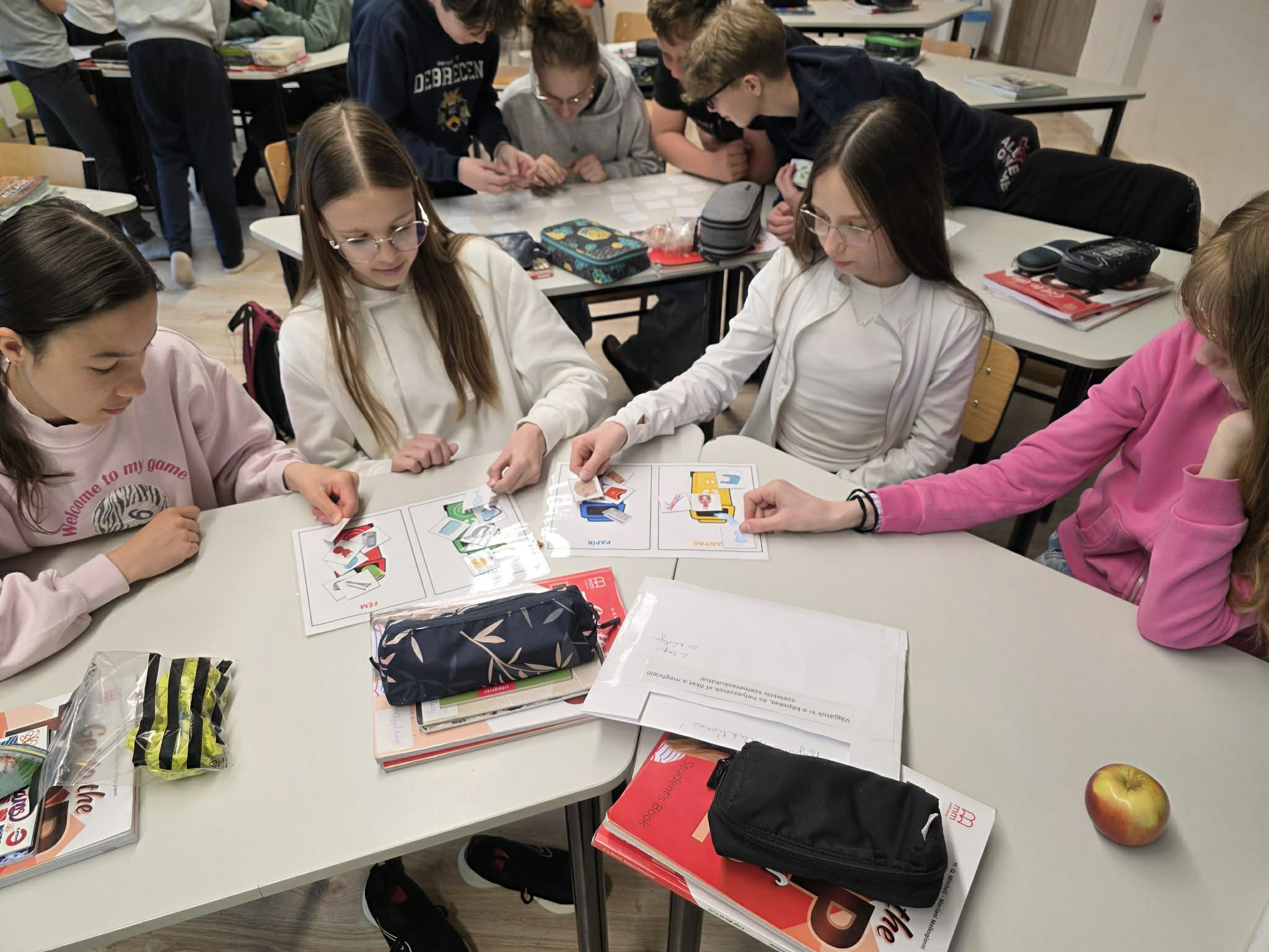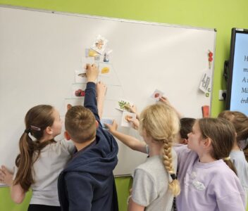 Az erdőt, mint komplex ökoszisztémát vizsgálták. Megértették, miért a fák a „föld tüdei”, és hogyan kapcsolódnak össze a növények és állatok egy láthatatlan, de létfontosságú hálózatban. Úton a jövő felé, a fenntartható közlekedés témakörében a hangsúly az ökológiai lábnyom csökkentésén volt. Beszélgettünk a kerékpározás előnyeiről, a közösségi közlekedés fontosságáról és a jövő elektromos megoldásairól. A hulladékkezelés során a gyerekek elsajátították a szelektív gyűjtés aranyszabályait, és megismerték az újrahasznosítás folyamatát. A legfontosabb üzenet azonban a megelőzés volt: a legjobb hulladék az, ami meg sem születik. A tudatos vásárlás gyakorlásával a diákok megtanulták értelmezni a csomagolások jelzéseit, és rájöttek, hogy a helyi termékek választásával rengeteg energiát spórolhatunk meg a környezetünknek, és a családunknak, ha bevásárló listával megyünk a boltba.